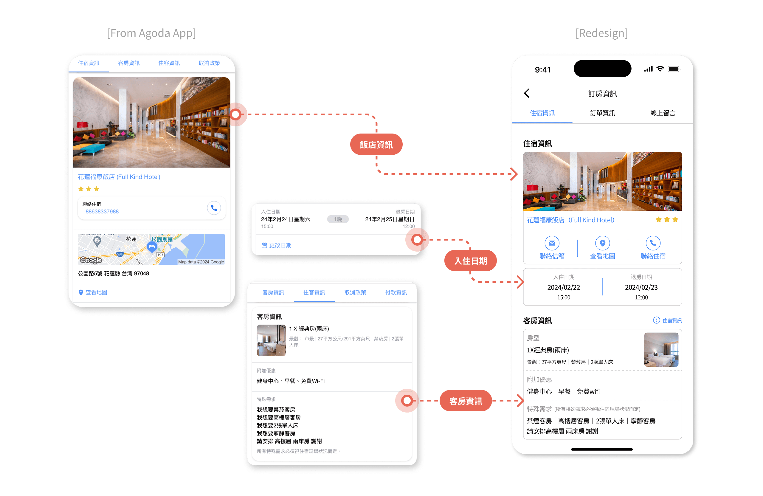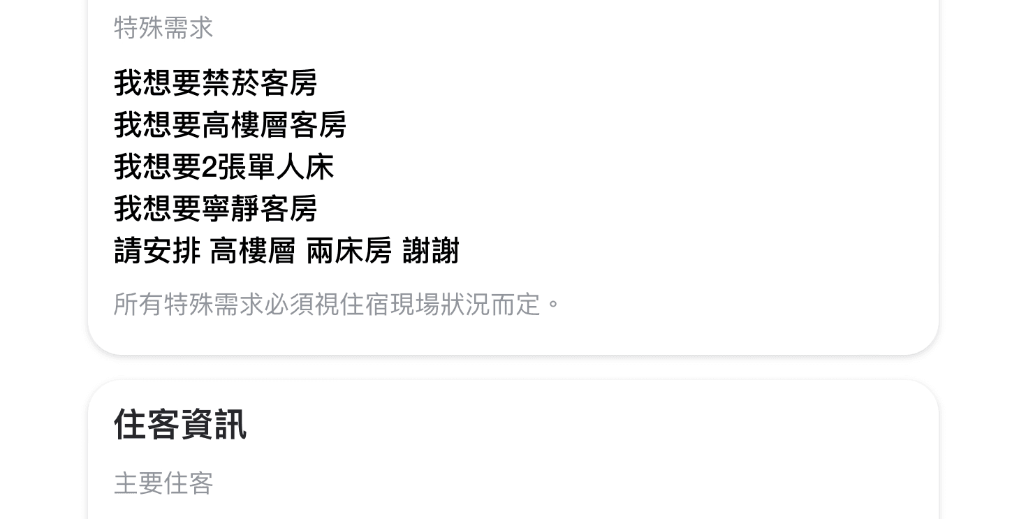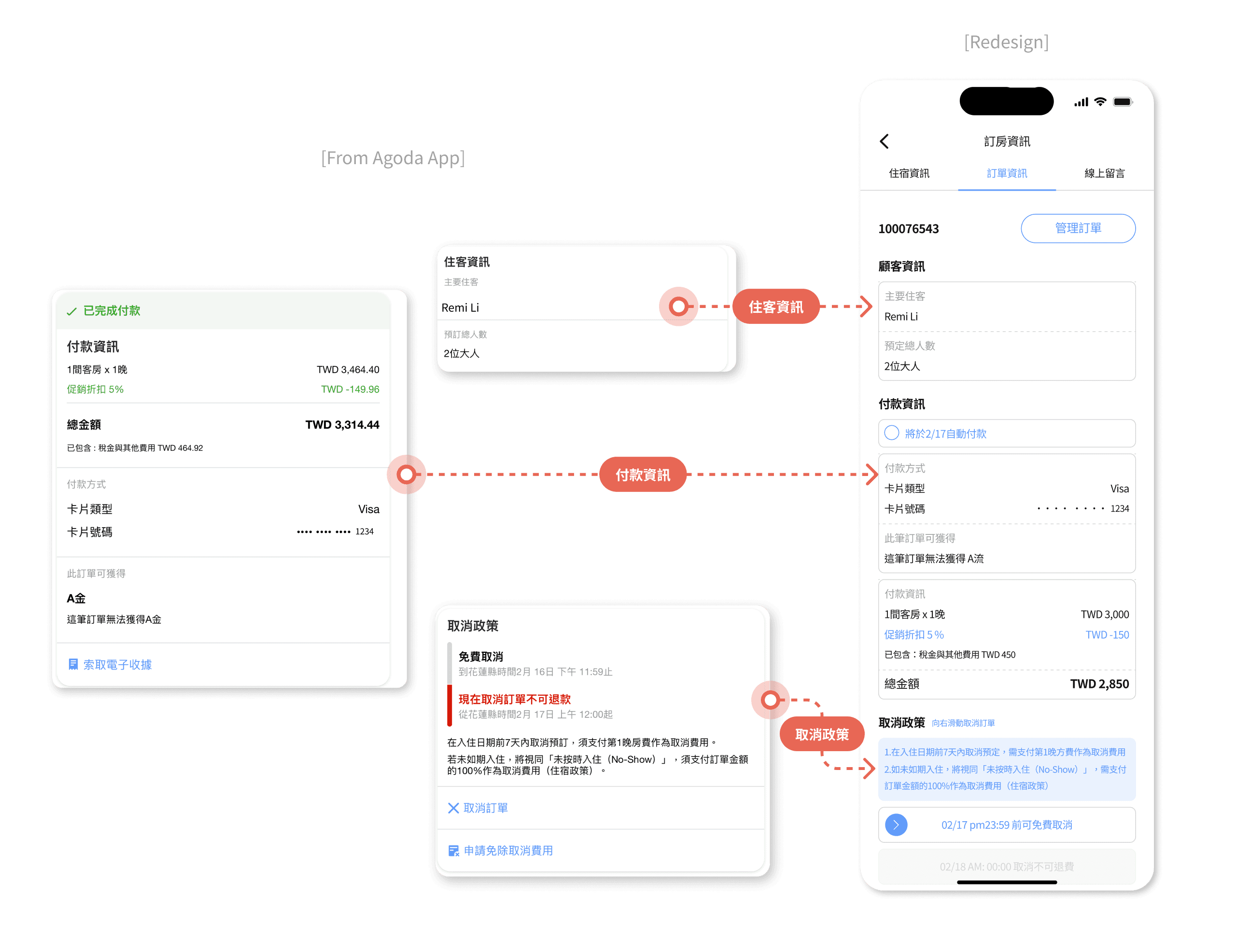 整合住客資訊、取消政策、付款資訊
